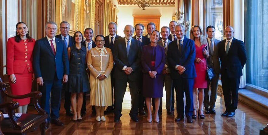 Ciudad de México, 03 Julio 2025.- Ante la desaceleración de la economía global, cerca de 12 empresarios reunidos hoy con la Presidenta Claudia Sheinbaum acordaron acelerar el Plan México.