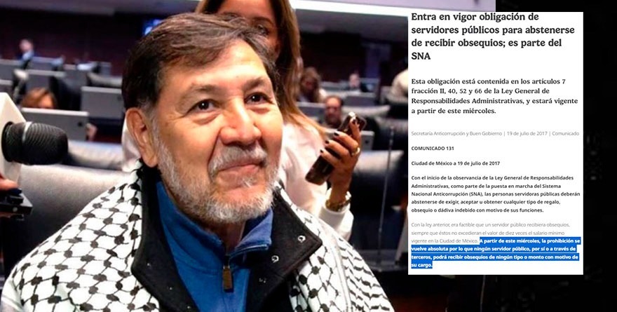 Ciudad de México 22 octubre 2025.- Aunque lo tiene prohibido por la Ley de Responsabilidades, el Código de Ética del Senado y hasta por los lineamientos de Morena, el senador Gerardo Fernández Noroña viajará con gastos pagados a Medio Oriente.