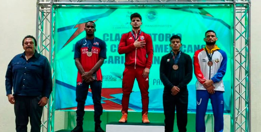 Panamá, 5 diciembre 2025.- El luchador veracruzano, Alexis Hernández Rodríguez se sube al podio en la categoría de 60 kg estilo Greco, en la competencia clasificatoria a los XXV Juegos Centroamericanos y del Caribe, al obtener medalla de bronce.