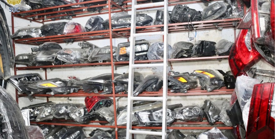 Dentro de las piezas que fueron encontradas en el lugar están siete diferentes placas de circulación, además de puertas, faros, parabrisas, calaveras, vidrios de puertas, cofres, rines, llantas, medallones, facias, salpicaderas, puertas de cajuela y vehículos desmantelados de distintos modelos, detalló la dependencia.