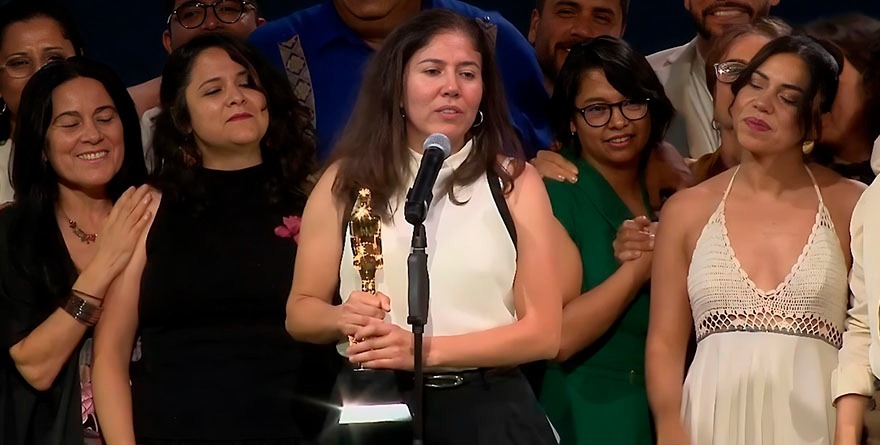 «Esta es una celebración del cine mexicano. Felicitar a todos y a todas las nominadas y ganadores, a todos los que hacemos cine. Esta película se hizo con la colaboración de mucha gente, de muchas instituciones, la UNAM, de los egresados (…) Creemos que el cine debe ser más diverso, que el cine debe hablar de nuestros tiempos, que el cine es la posibilidad de que reflexionemos de aquello que nos duele y también de aquello que hay que celebrar», dijo Valadez al recibir la estatuilla. «Todas las vidas de todos merecen ser hermosas, plenas, felices y justas, y esta película de eso quería hablar. Así que, muchísimas gracias por esto», agregó Astrid Rondero, co directora.