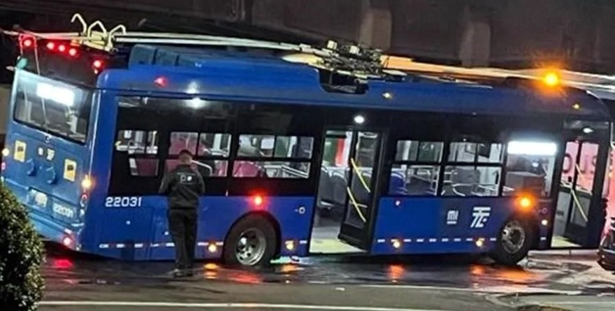 Ahora, una unidad de Trolebús cayó en un socavón en la Alcaldía Venustiano Carranza.