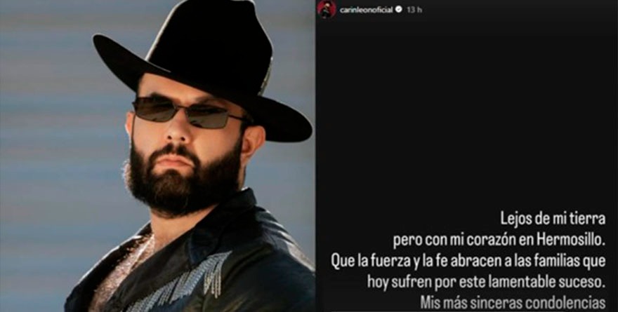 En medio del dolor colectivo, Carín León, originario de Hermosillo, se pronunció a través de su cuenta de Instagram. Aunque se encuentra fuera del país en una gira —este fin de semana se presentó en Santiago de Chile—, no olvidó su lugar de origen.