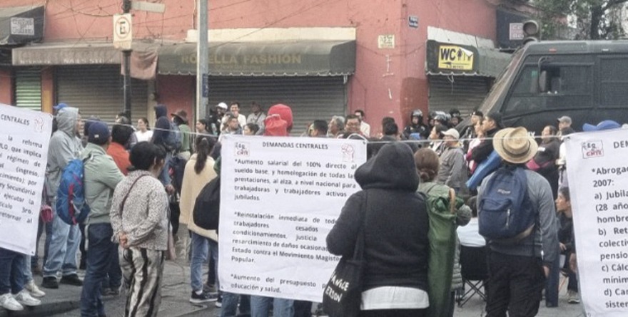 Desde la madrugada, integrantes de la Coordinadora Nacional de Trabajadores de la Educación (CNTE) tomaron los accesos a Palacio Nacional como “una medida de presión” para acelerar el diálogo con la presidenta Claudia Sheinbaum Pardo.