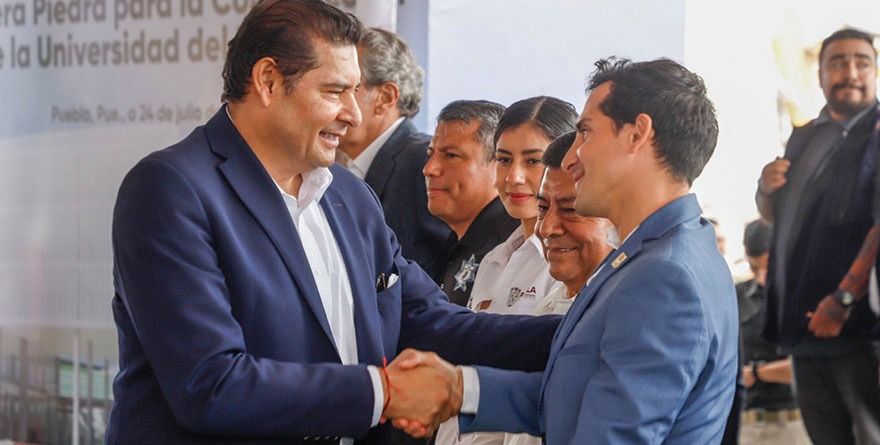 Puebla, Pue., 24 julio 2025.- El Director General de la Comisión Nacional de Cultura Física y Deporte (CONADE), Rommel Pacheco Marrufo, y el Gobernador de Puebla, Alejandro Armenta Mier, colocaron este jueves la primera piedra de la Universidad del Deporte que se construirá en dicho estado.