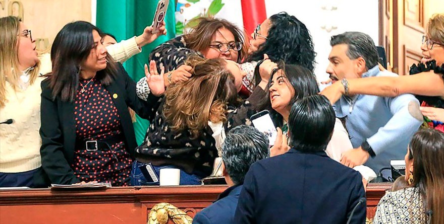 Ayala arremetió con un manotazo a la cabeza de la panista, por lo que la también diputada de Acción Nacional, Claudia Pérez, jaló del pelo a Ayala. A su vez, la morenista Rosario Morales, jaloneó a Pérez del cabello. Las cuatro quedaron trenzadas durante prácticamente un minuto, mientras otros legisladores buscaban separarlas.