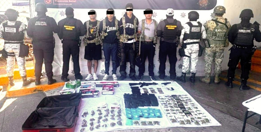 Monterrey, NL 28 diciembre 2025.- Cuatro hombres armados fueron detenidos en Guadalupe cuando entregaban regalos que traían etiquetas con las siglas de un cartel, una práctica a la que recurre el crimen organizado para generar simpatía con la comunidad, especialmente en la época navideña.