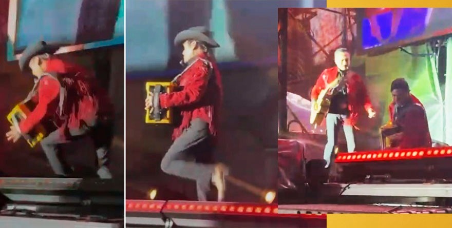 San Luis Potosí, SLP, 19 agosto 2025.- La noche del domingo, durante su presentación estelar en el Teatro del Pueblo de la Feria Nacional Potosina (Fenapo), los Tigres del Norte ofrecieron un concierto que se convirtió en tema de conversación más allá de la música. Mientras interpretaban La Lotería, Jorge Hernández, voz principal y acordeonista del grupo, tropezó y cayó de costado en el escenario, lo que generó un momento de sorpresa entre los asistentes.