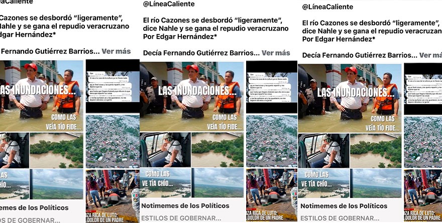 Mientras con los chairos su exponente, Rocío Nahle, experta en la escenografía política, buena para la foto, mejor para el peinado, la pose con el dedo flamígero, el calzado sin mácula de lodo y para la orden sin discusión, ella es la mejor.         Es como Dios, la que resuelve todo, no en siete días, sino en un abrir y cerrar de ojos. Por ello cuando dice que el río Cazones se desbordó ligeramente es porque se desbordó “ligeramente”.