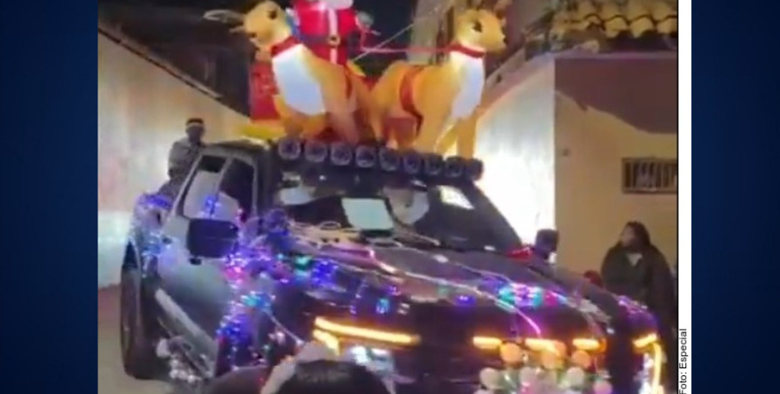 En un video de redes sociales se ve la caravana de al menos tres camionetas con luces navideñas que transporta a hombres con armas largas vestidos de Santa Claus.