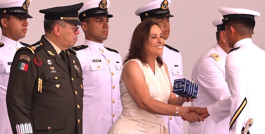 Alvarado, Ver., 25 julio 2025.- En acto solemne la gobernadora Rocío Nahle García asistió como madrina e invitada de honor del secretario de Marina, Raymundo Pedro Morales Ángeles, a la ceremonia de graduación de las generaciones 2020-2025 y 2021-2025 de la Heroica Escuela Naval Militar, ubicada en Antón Lizardo.