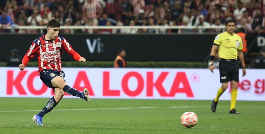 Después de anularse un tiro penal a favor de Chivas mediante la revisión del VAR, apareció Brian Gutiérrez con un disparo al ángulo para abrir el marcador al 36′.