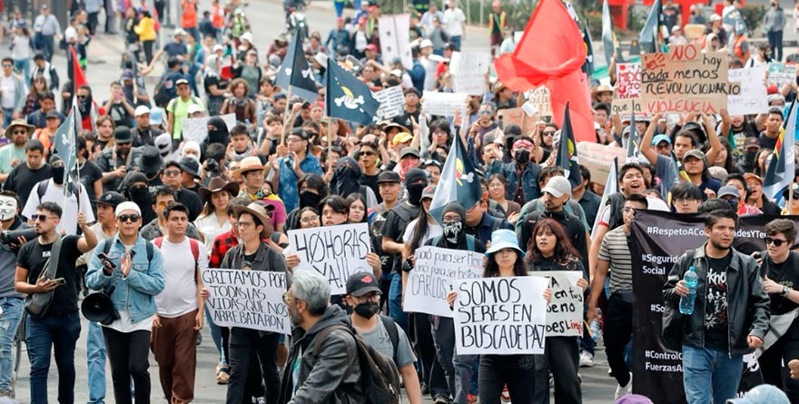 «Hoy no estamos para enfrentar a estos desgraciados, no estamos aquí para crear más violencia, porque no somos como el Gobierno, no somos como ese sistema de poder que nos está oprimiendo, venimos a una consigna que a todos, a todas, a todos nos compete», leyeron en un pronunciamiento,