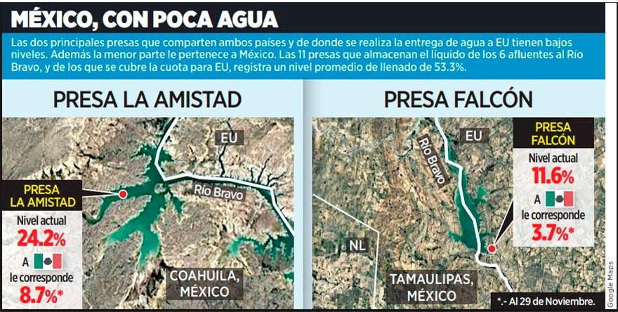 El lunes pasado Trump exigió a México entregar 246 millones de metros cúbicos de agua de la cuenca del Río Bravo a agricultores de Texas antes de que termine el año.