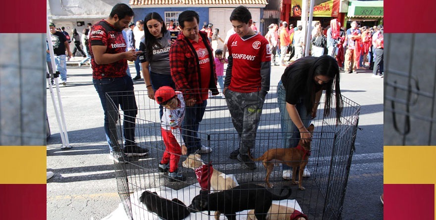 Cada fin de semana en el Acceso A-3 del Estadio Nemesio Diez, la Comisión Estatal de Parques Naturales y de la Fauna (Cepanaf), organismo adscrito a la Secretaría de Medio Ambiente y Desarrollo Sostenible, instala módulos de adopción responsable y durante el medio tiempo de los partidos los lomitos saltan a la cancha en busca de una familia.