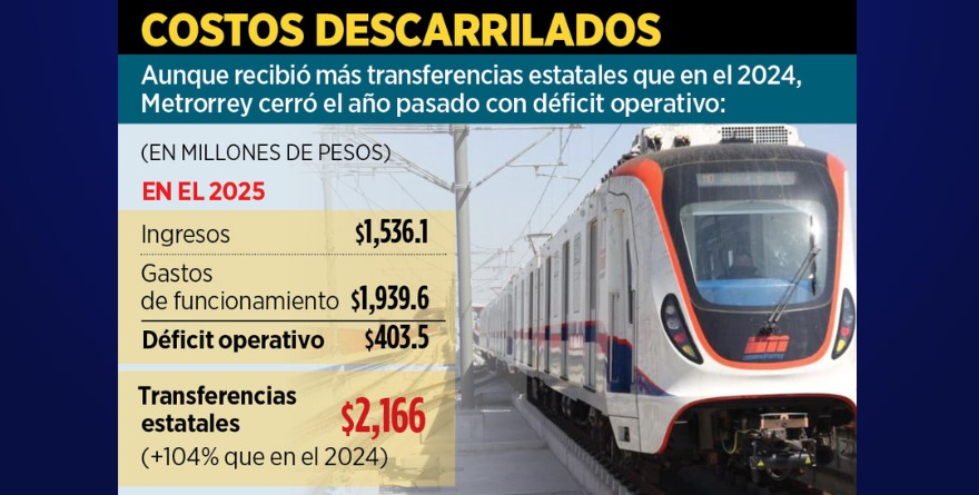 El déficit en Metrorrey se da pese a que también tuvo un incremento del 50 por ciento en los ingresos por pasajes, incluyendo Metro y Transmetro en el 2025.