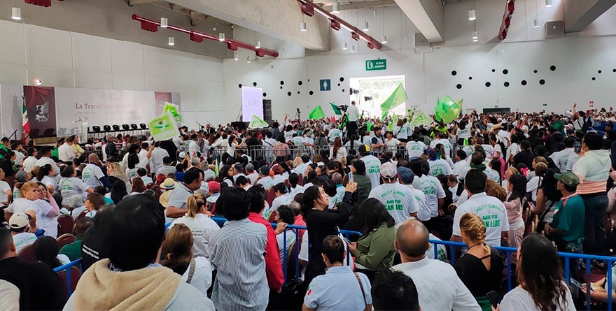 El acto estuvo marcado por un ambiente de entusiasmo y respaldo popular, evidenciado por la multitud que se dio cita desde tempranas horas en el recinto. Dirigentes estatales del Partido Verde y funcionarios locales acompañaron al gobernador y a la presidenta durante el evento.