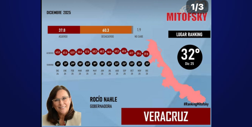 A ello se suma la última encuesta ciudadana que persiste en colocar a la gobernadora Rocío Nahle en el último lugar de popularidad y aceptación ciudadana.