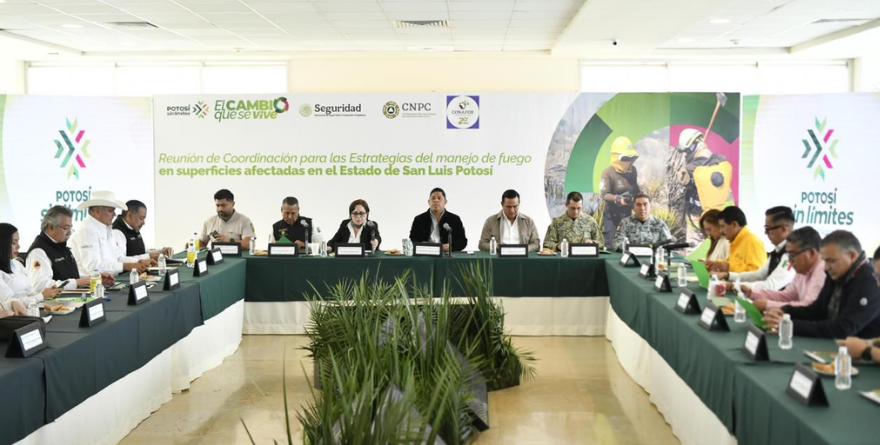 - El Gobernador del Estado encabezó la Reunión de coordinación para las estrategias del manejo del fuego en superficies afectadas en San Luis Potosí, sumando esfuerzos entre los tres niveles de Gobierno para accionar en las contingencias.