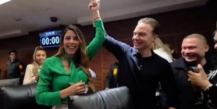 «Ella todavía no ha decidido, pero en las encuestas que nosotros hemos hecho en el partido va dos a uno arriba, con una amplia ventaja, de más de 20 puntos. Ojalá se anime», propuso el coordinador, al tiempo que por segunda ocasión le levantaba el brazo.