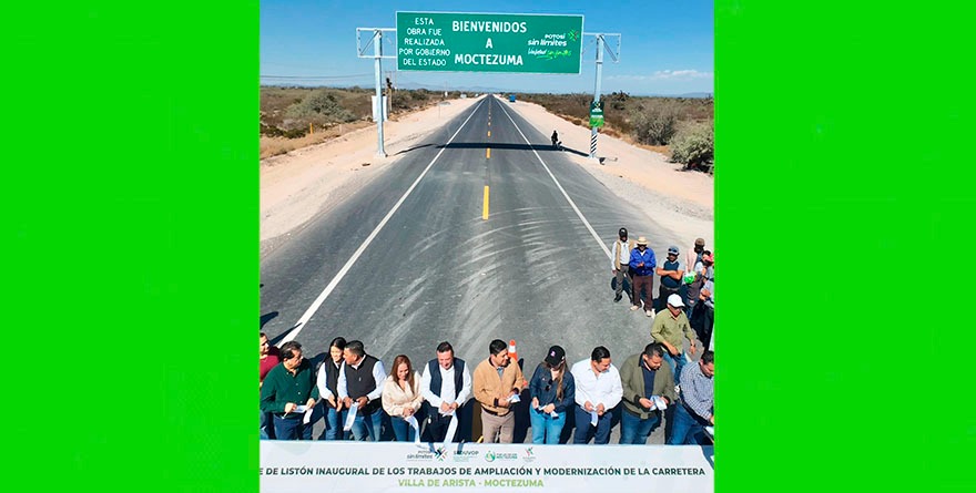 De igual forma, el Gobernador del Estado anunció el proyecto “Altiplano Sin Límites”, el cual contempla la construcción de una nueva carretera moderna, amplia y segura que conectará los municipios de Moctezuma, Venado y Charcas hasta llegar a Matehuala, además de la rehabilitación del camino de Villa de Arista a la Carretera 57.