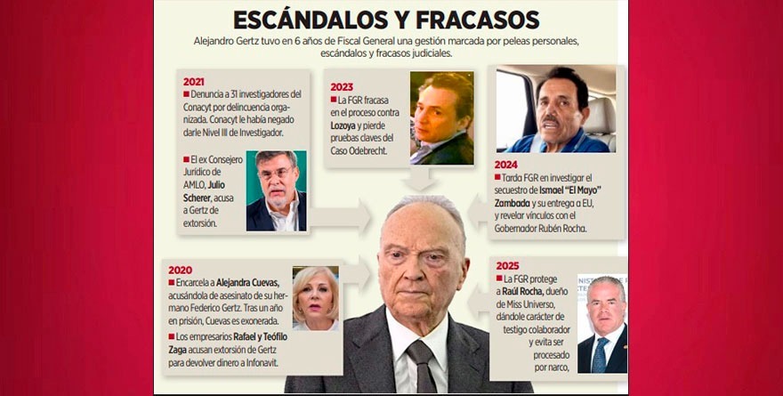 La separación de Gertz Manero ocurre tras casi siete años en el cargo y luego de una gestión envuelta en polémicas y fracasos judiciales a lo que se suman desencuentros con la Administración de la Presidenta Sheinbaum, particularmente con el Secretario de Seguridad, Omar García Harfuch.