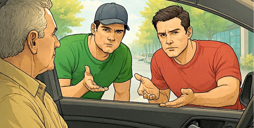 En caso de que no se detenga, un segundo sujeto le insiste, con el objetivo de ganar credibilidad. Una vez que el automovilista se estaciona, los perpetradores ofrecen a cambiar la llanta o a llevarle a un local donde, le prometen, se les apoyará.