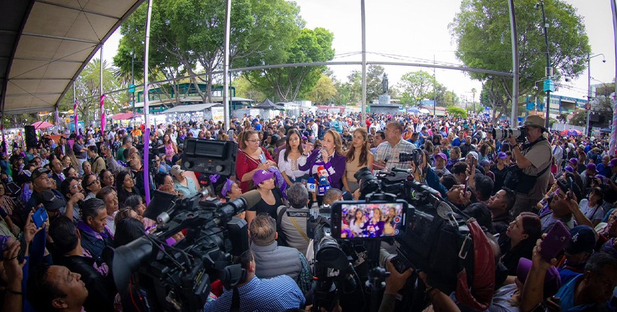 La Macroplaza del Jardín Cuitláhuac, en Iztapalapa fue elegida por la candidata para dirigir un mensaje a la ciudadanía que por primera vez en la historia de Méxicoacudirá a las urnas para votar por quienes, a partir del próximo 1 de septiembre, serán investidos con la responsabilidad que distingue a los integrantes de la Corte.